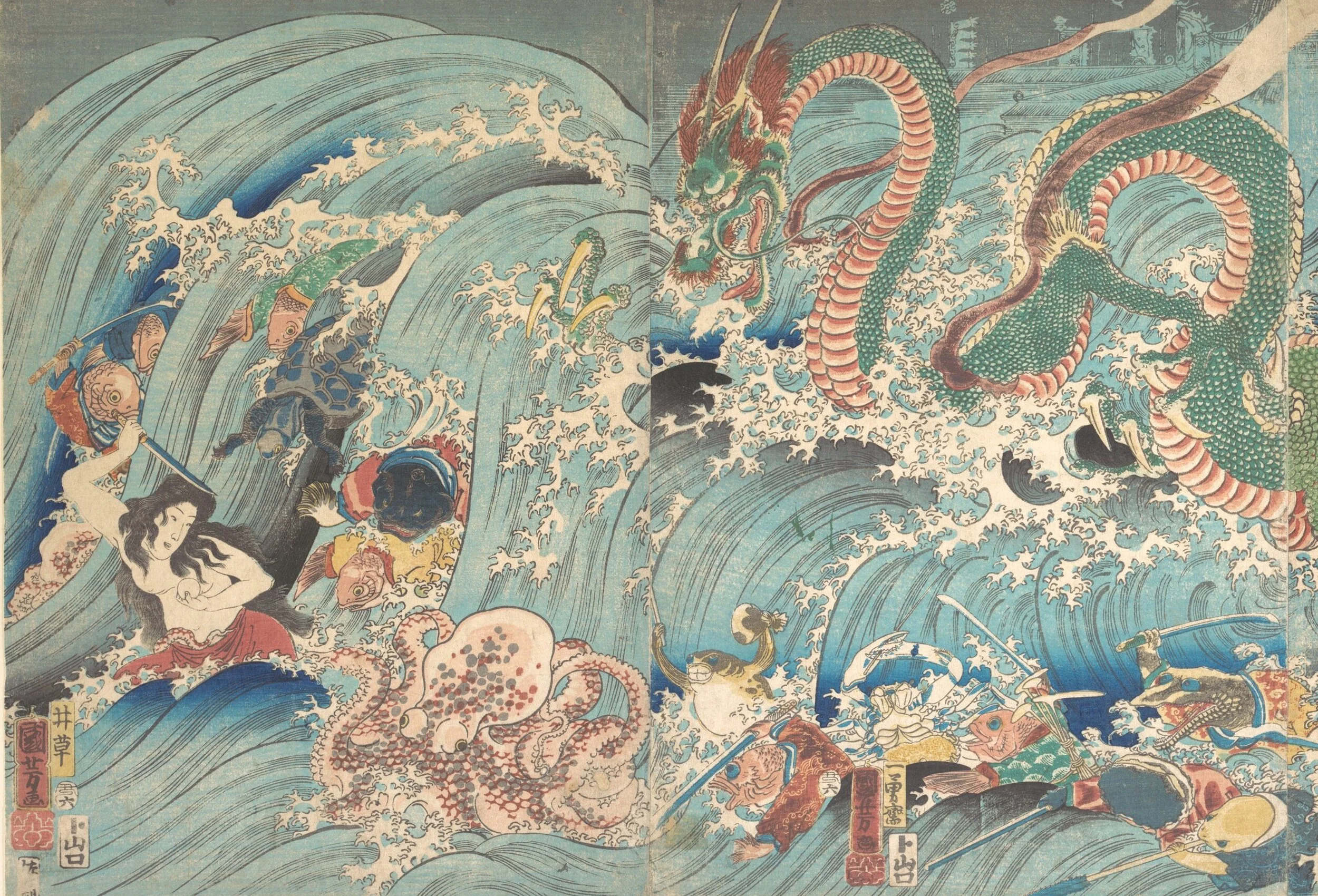 Image: (1) Utagawa Kuniyoshi, (2) Durga Slaying the Buffalo Demon